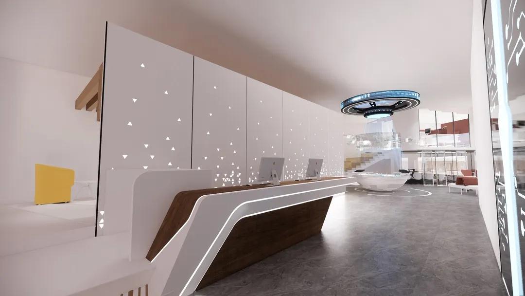 色彩在深圳裝飾公司室內(nèi)裝飾空間中的應(yīng)用。每種顏色都會使我們有不同的感覺。技術(shù)藍(lán)色和未來白色主要用于顏色,未來白色用于墻壁和定制桌子,技術(shù)藍(lán)色用于某些VR和全息設(shè)備,淺木地板和灰色混凝土用于地板。地板的顏色比辦公家具的顏色深。主要帶有一些睿智而沉穩(wěn)的語氣。