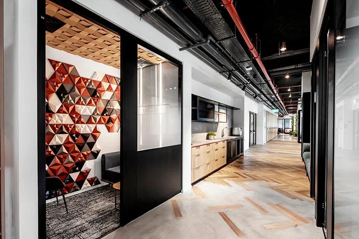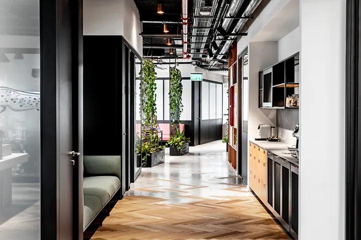 裸露的天花板,半覆蓋的金屬網(wǎng),懸浮的隔音板天花板,部分地毯,靈活的設(shè)計(jì)方法營造出有趣而有趣的辦公環(huán)境。還仔細(xì)考慮了室內(nèi)裝飾材料的應(yīng)用。工業(yè)質(zhì)感材料和充滿活力的綠色植物的結(jié)合,一方面表明它具有科學(xué)和技術(shù)特性,另一方面也表明這是一個(gè)活潑宜人的地方。