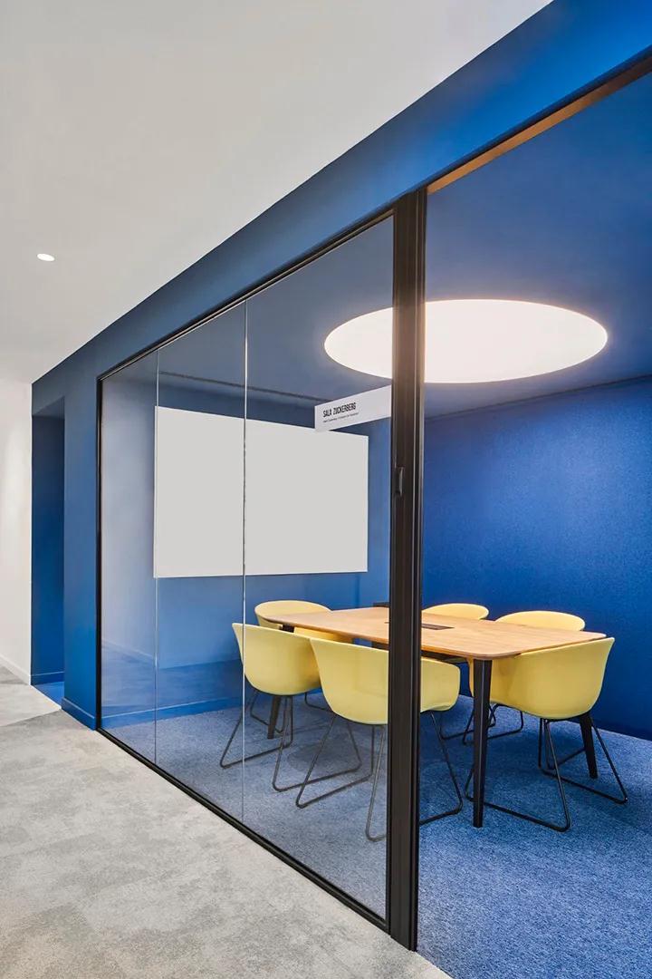 該項目位于西班牙巴塞羅那的dau大樓的六樓,主要用于西班牙金融服務公司的創新和營銷部門。該案例是由深圳裝飾公司的設計團隊創建的。內部顏色主要是藍色和黃色,來自公司的圖像徽標,在這種情況下,最終實現了該空間的驚人視覺效果。藍色調的色彩表達,深圳裝飾公司在會議室和休息區的墻壁,頂面和地板上呈現了最極端的方法,由色彩形成了高度獨立的空間。
