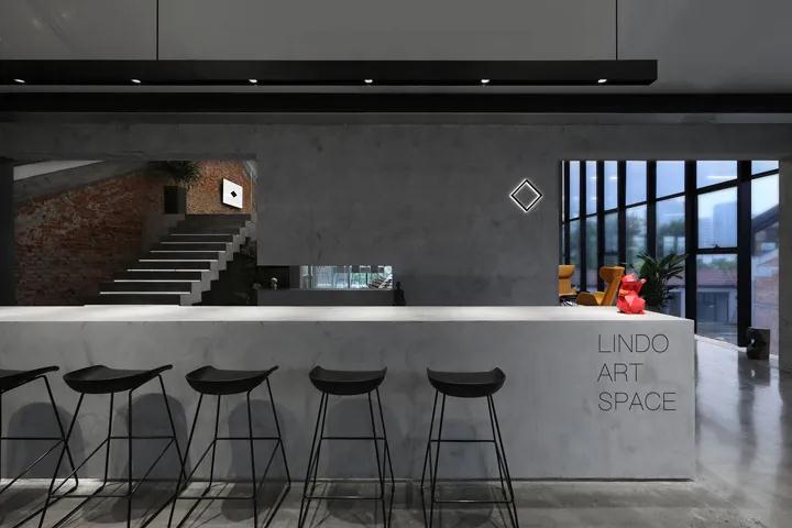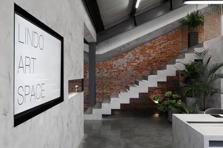 最簡單的混凝土樓梯上嵌有幾何線條照明,就像在梯子上行走一樣,使整個空間更加無形,并營造出寧靜自然的風格。