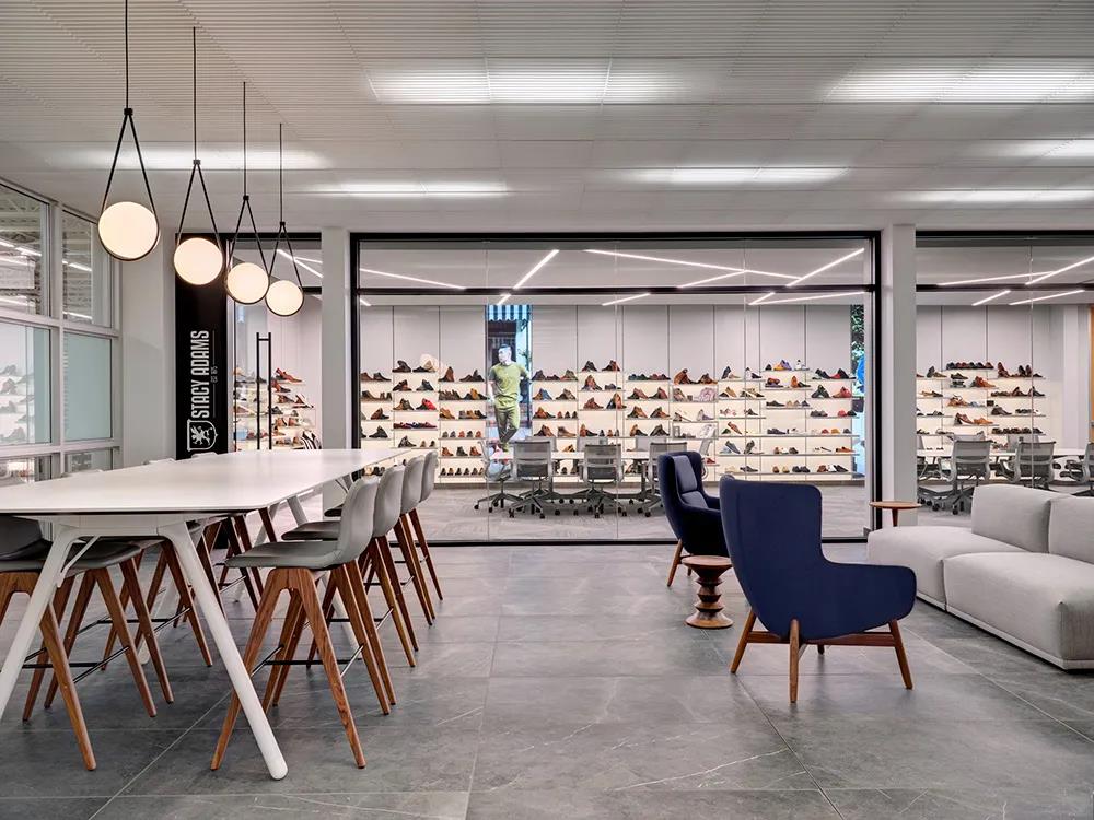 全新設(shè)計的品牌陳列室位于一樓的中心,接待批發(fā)和零售客戶。它目前以虛擬方式顯示。每個房間都代表著一個品牌的體驗品質(zhì);但同時,所有的房間都是由相似的材料連接起來的。設(shè)計團隊規(guī)劃了一個中央接待空間,為所有品牌房間服務(wù),還有一個安靜的工作或午餐空間,直到他們可以與客戶面對面交流。