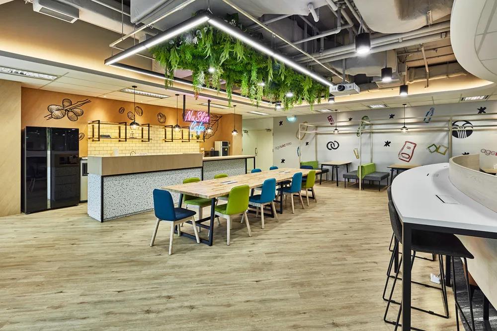 為兼顧開放布局中的活力與私密性需求,方案采用漸進式分區方式。深圳裝飾公司用不同質感的材料劃分活動社交區和重點工作區。辦公室的一端是充滿活力的如新咖啡廳,另一端是以白色為主的安靜空間,為需要專注于工作的員工提供了一個不受干擾的環境。方案充分考慮了后COVID-19時代的工作模式,辦公室裝修設計可以同時滿足現場工作和遠程工作的需求。靈活的空間整合非接觸式數字解決方案,讓如新東南亞保持領先姿態,迎接未來。