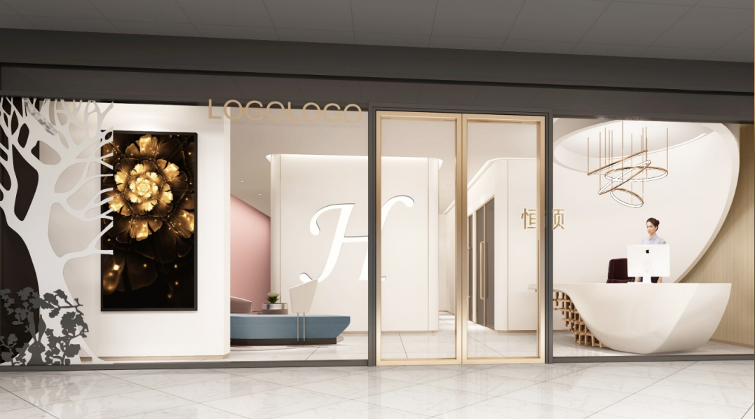 招牌:如同人的臉面,要突出美容院文化氣息的同時,更要展現所經營品牌的內涵,在顏色的搭配上結合品牌及產品的主色調與時尚相依襯,達到引人注目的效果。